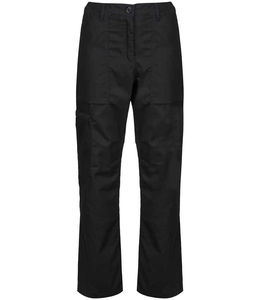 Step out in style and comfort with the Regatta Ladies New Action Trousers! These playful trousers feature a water-repellent finish and a part elasticated waistband with belt loops for a perfect fit. Designed with durable knee patches and plenty of storage, they include two large side pockets with hem bellows, a right leg zip pocket, and rear pockets—one with a zip to keep your essentials safe. Ready for any adventure, these trousers combine practicality with a fun, confident vibe.
